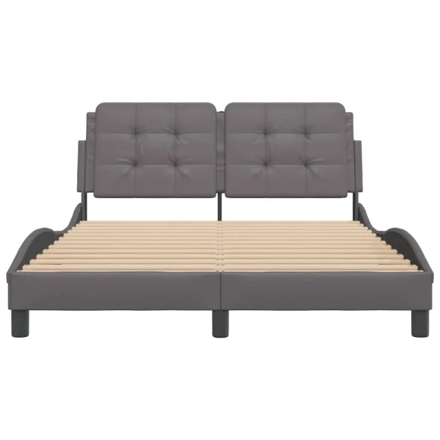 Posteljni okvir - Dvoposteljna postelja - Zakonska postelja z LED lučkami siv 140x190 cm umetno usnje
