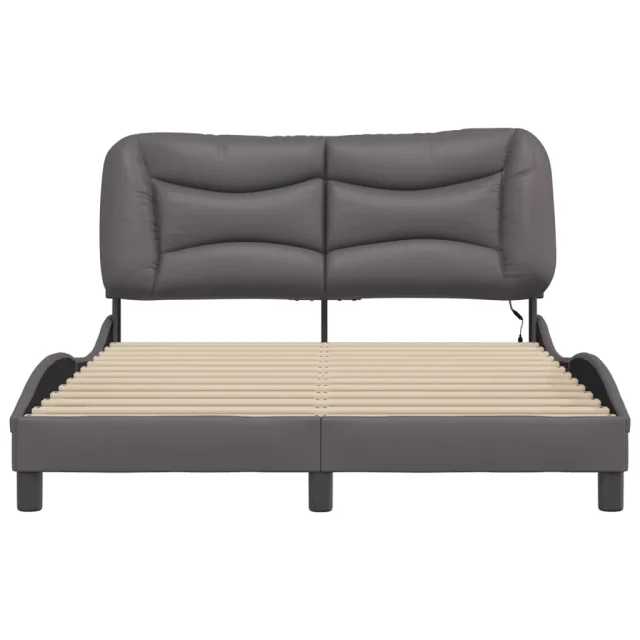 Posteljni okvir - Dvoposteljna postelja - Zakonska postelja z LED lučkami siv 140x200 cm umetno usnje