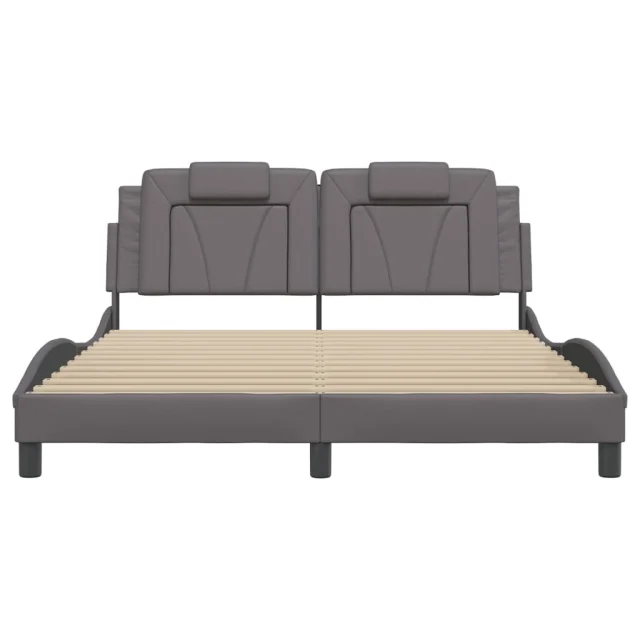 Posteljni okvir - Dvoposteljna postelja - Zakonska postelja z LED lučkami siv 160x200 cm umetno usnje