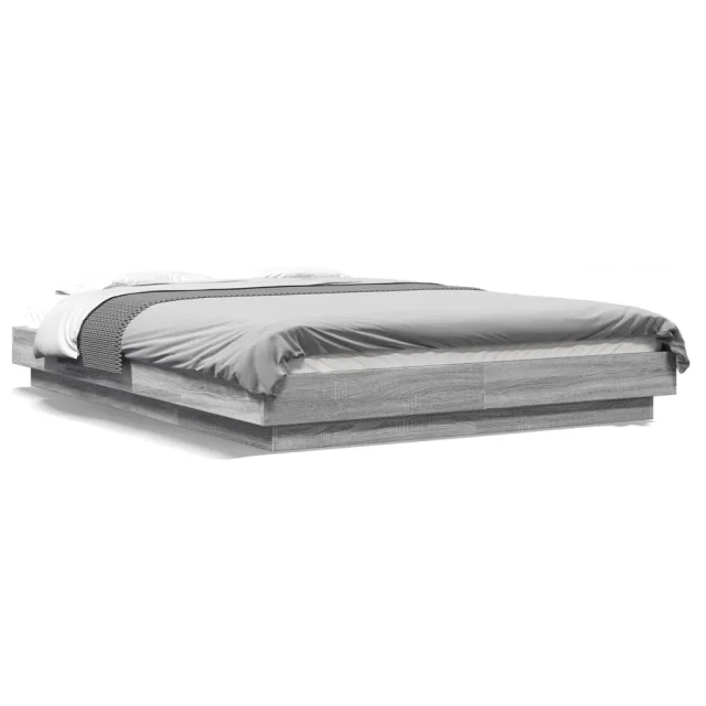 Posteljni okvir - Dvoposteljna postelja - Zakonska postelja z LED lučkami siva sonoma 120x200 cm inž. les