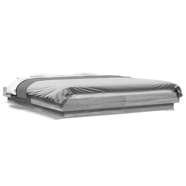 Posteljni okvir - Dvoposteljna postelja - Zakonska postelja z LED lučkami siva sonoma 150x200 cm inž. les