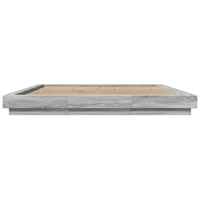 Posteljni okvir - Dvoposteljna postelja - Zakonska postelja z LED lučkami siva sonoma 200x200 cm inž. les