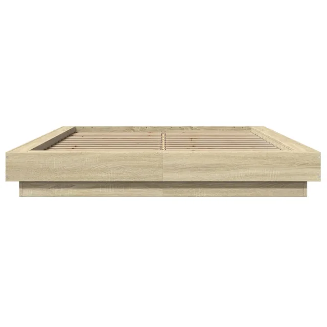 Posteljni okvir - Dvoposteljna postelja - Zakonska postelja z LED lučkami sonoma hrast 135x190 cm inž. les