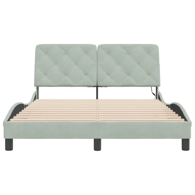 Posteljni okvir - Dvoposteljna postelja - Zakonska postelja z LED lučkami svetlo siv 140x190 cm žamet