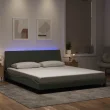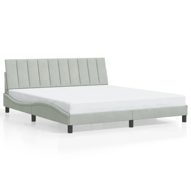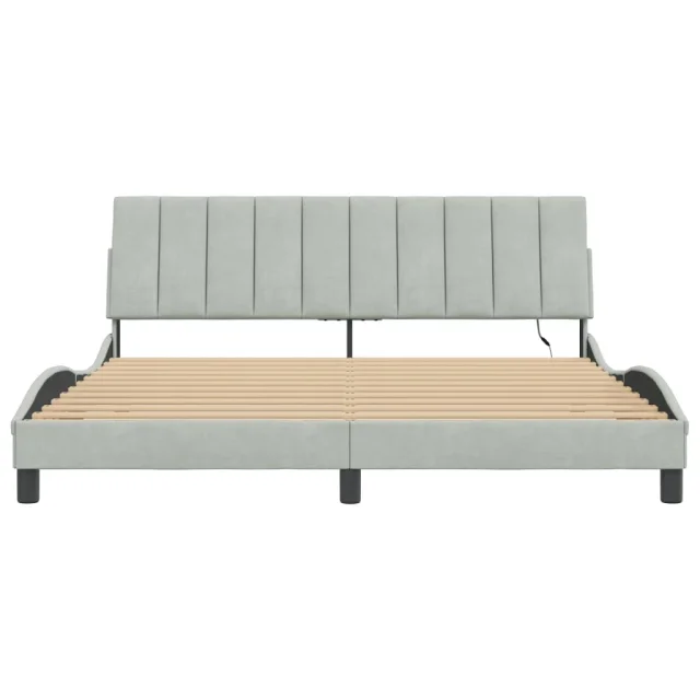 Posteljni okvir - Dvoposteljna postelja - Zakonska postelja z LED lučkami svetlo siv 180x200 cm žamet