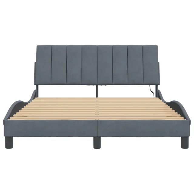 Posteljni okvir - Dvoposteljna postelja - Zakonska postelja z LED lučkami temno siv 120x200 cm žamet