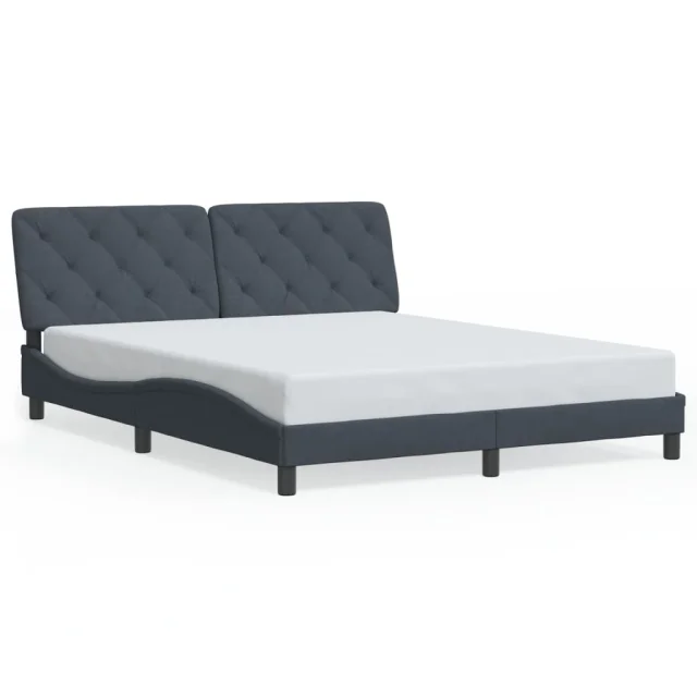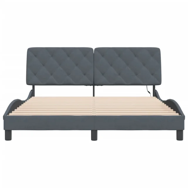Posteljni okvir - Dvoposteljna postelja - Zakonska postelja z LED lučkami temno siv 160x200 cm žamet