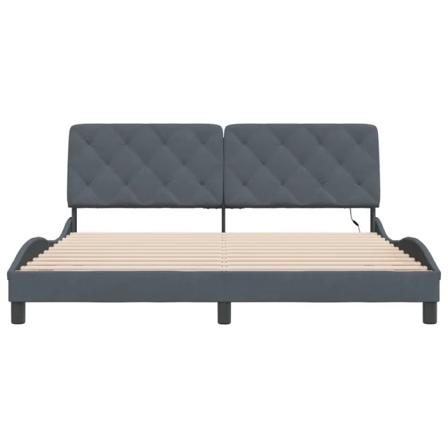 Posteljni okvir - Dvoposteljna postelja - Zakonska postelja z LED lučkami temno siv 180x200 cm žamet