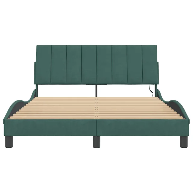 Posteljni okvir - Dvoposteljna postelja - Zakonska postelja z LED lučkami temno zelen 120x200 cm žamet