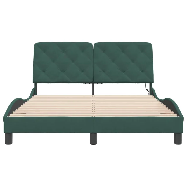 Posteljni okvir - Dvoposteljna postelja - Zakonska postelja z LED lučkami temno zelen 140x190 cm žamet