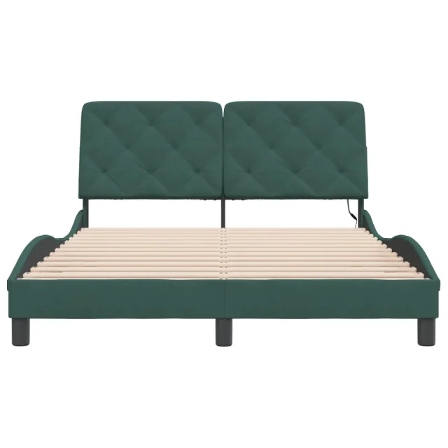Posteljni okvir - Dvoposteljna postelja - Zakonska postelja z LED lučkami temno zelen 140x200 cm žamet