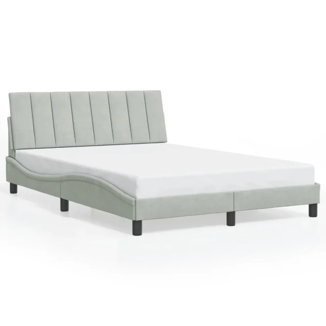 Posteljni okvir - Dvoposteljna postelja - Zakonska postelja z LED lučmi svetlo siv 140x200 cm žamet