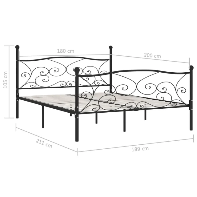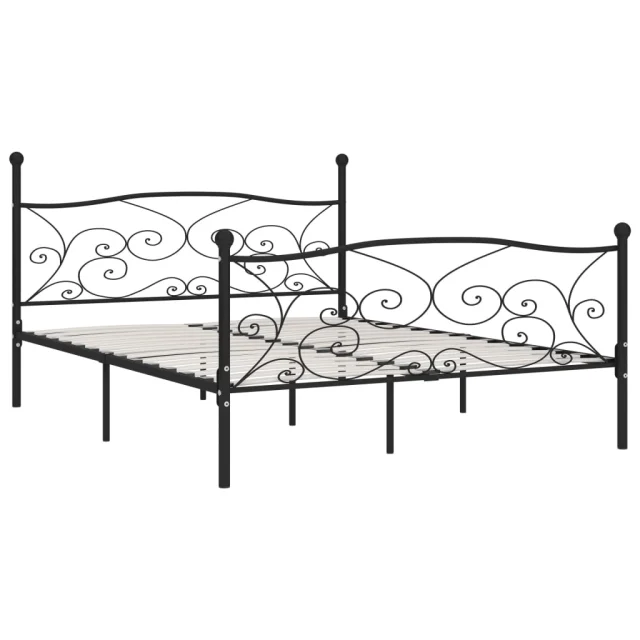 Posteljni okvir - Dvoposteljna postelja - Zakonska postelja z letvenim dnom črn kovinski 180x200 cm
