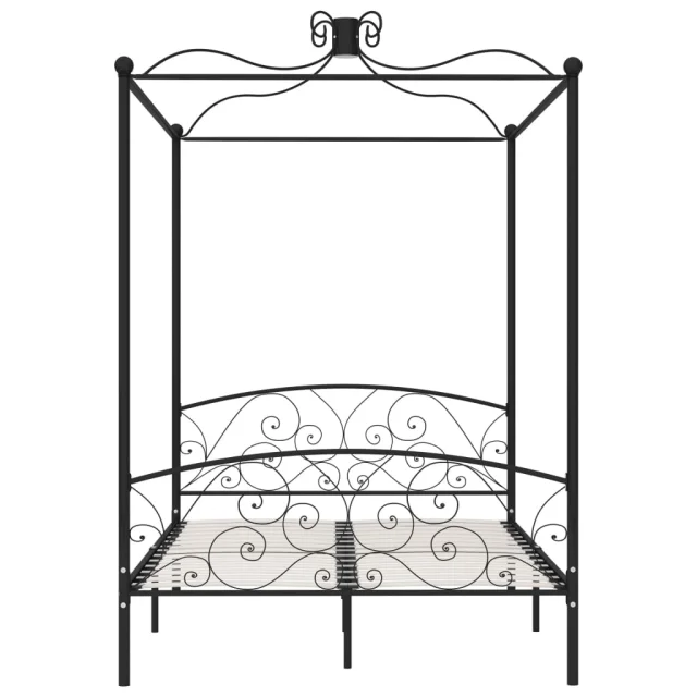 Posteljni okvir - Dvoposteljna postelja - Zakonska postelja z ogrodjem za baldahin črn kovinski 140x200 cm
