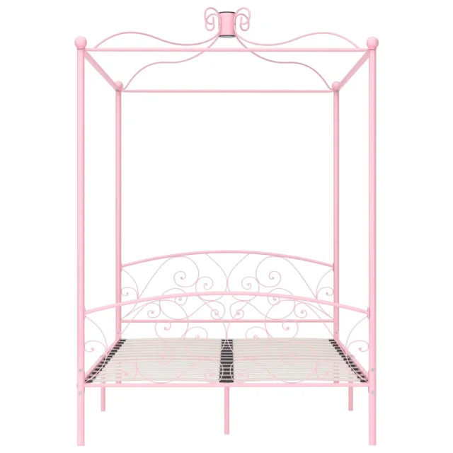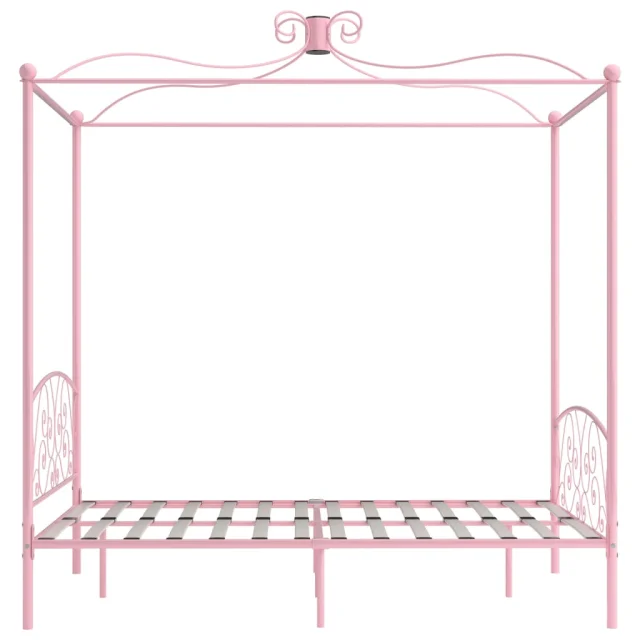 Posteljni okvir - Dvoposteljna postelja - Zakonska postelja z ogrodjem za baldahin roza kovinski 120x200 cm