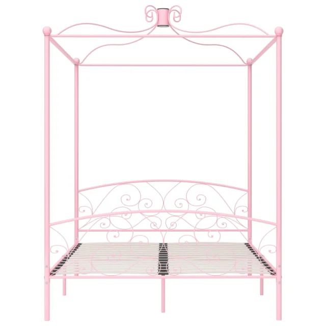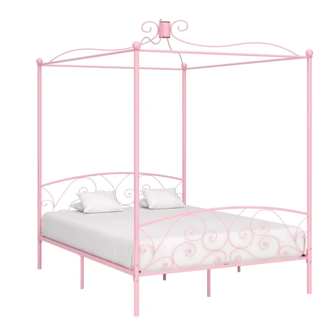 Posteljni okvir - Dvoposteljna postelja - Zakonska postelja z ogrodjem za baldahin roza kovinski 160x200 cm