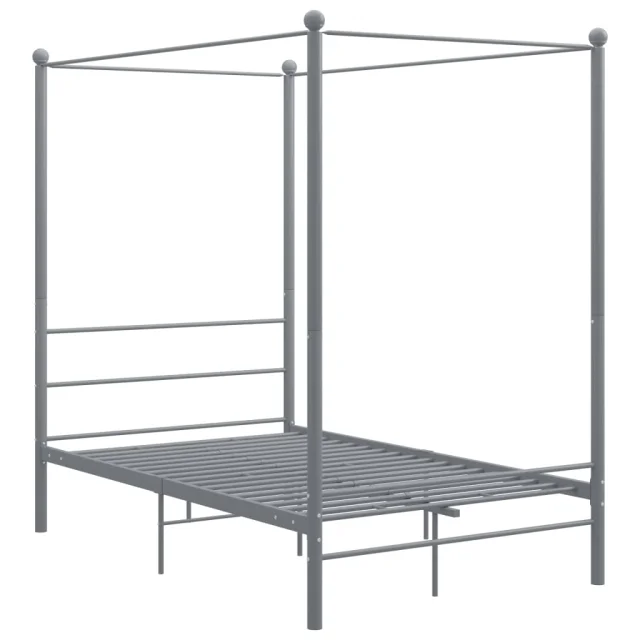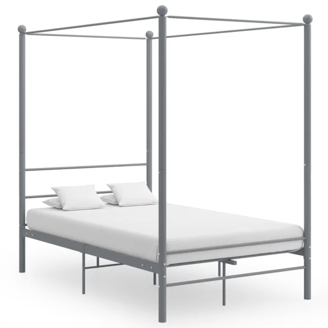 Posteljni okvir - Dvoposteljna postelja - Zakonska postelja z ogrodjem za baldahin siv kovinski 120x200 cm