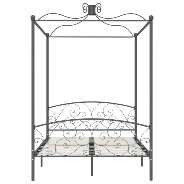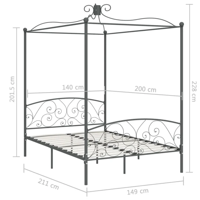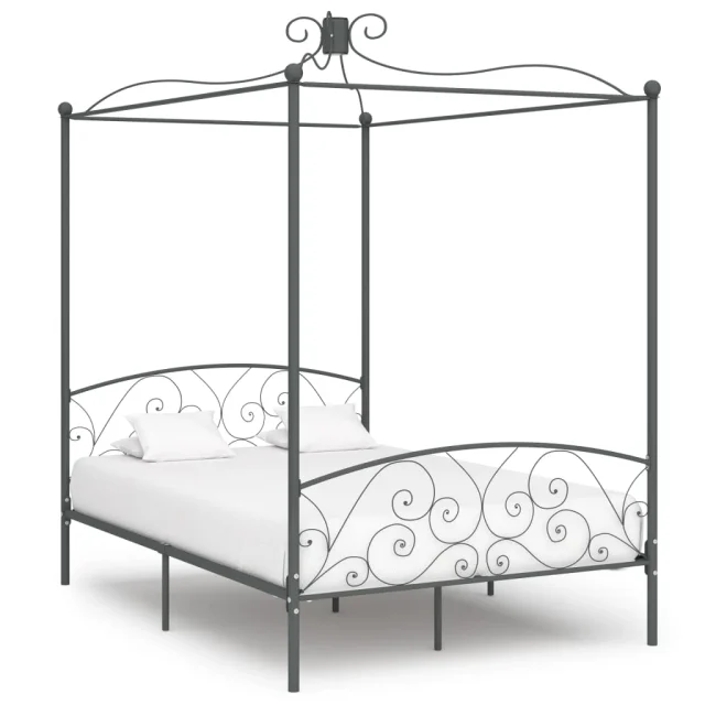 Posteljni okvir - Dvoposteljna postelja - Zakonska postelja z ogrodjem za baldahin siv kovinski 140x200 cm