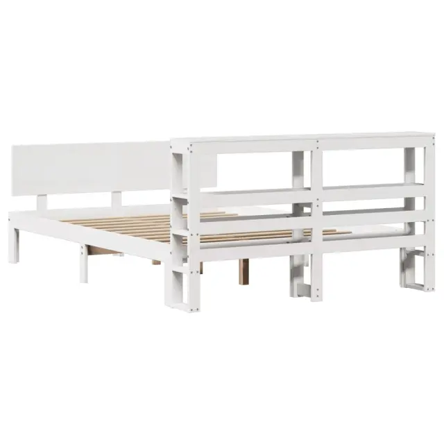 Posteljni okvir - Dvoposteljna postelja - Zakonska postelja z vzglavjem bel 120x190 cm trdna borovina