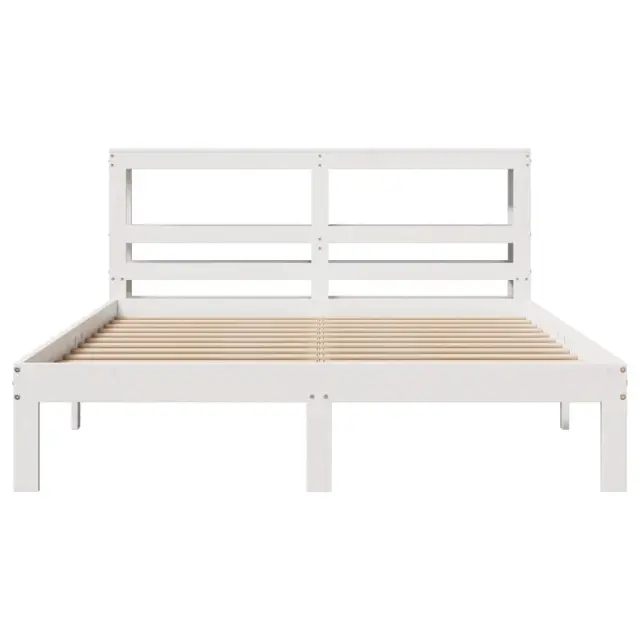 Posteljni okvir - Dvoposteljna postelja - Zakonska postelja z vzglavjem bel 120x190 cm trdna borovina