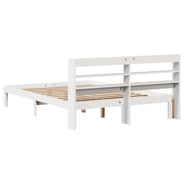 Posteljni okvir - Dvoposteljna postelja - Zakonska postelja z vzglavjem bel 135x190 cm trdna borovina