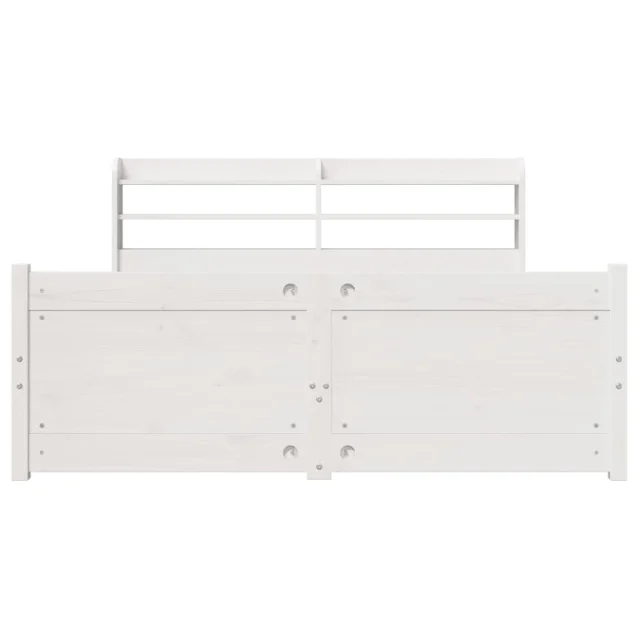 Posteljni okvir - Dvoposteljna postelja - Zakonska postelja z vzglavjem bel 150x200 cm trdna borovina