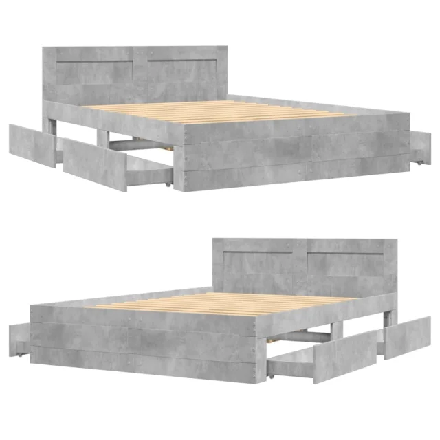 Posteljni okvir - Dvoposteljna postelja - Zakonska postelja z vzglavjem betonsko siv 140x200 cm inž. les