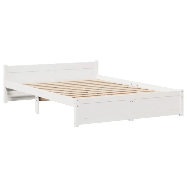 Posteljni okvir - Dvoposteljna postelja - Zakonska postelja z vzglavjem brez vzmetnice bel 140x190 cm