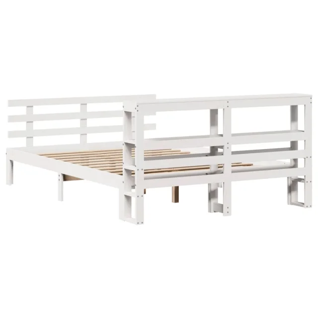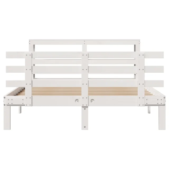 Posteljni okvir - Dvoposteljna postelja - Zakonska postelja z vzglavjem brez vzmetnice bel 140x200 cm