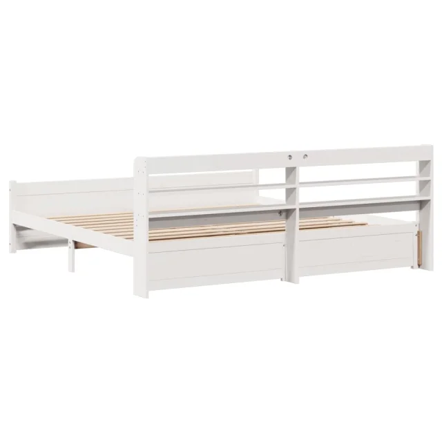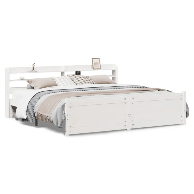 Posteljni okvir - Dvoposteljna postelja - Zakonska postelja z vzglavjem brez vzmetnice bel 180x200 cm