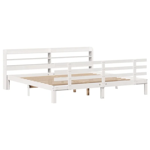 Posteljni okvir - Dvoposteljna postelja - Zakonska postelja z vzglavjem brez vzmetnice bel 180x200 cm