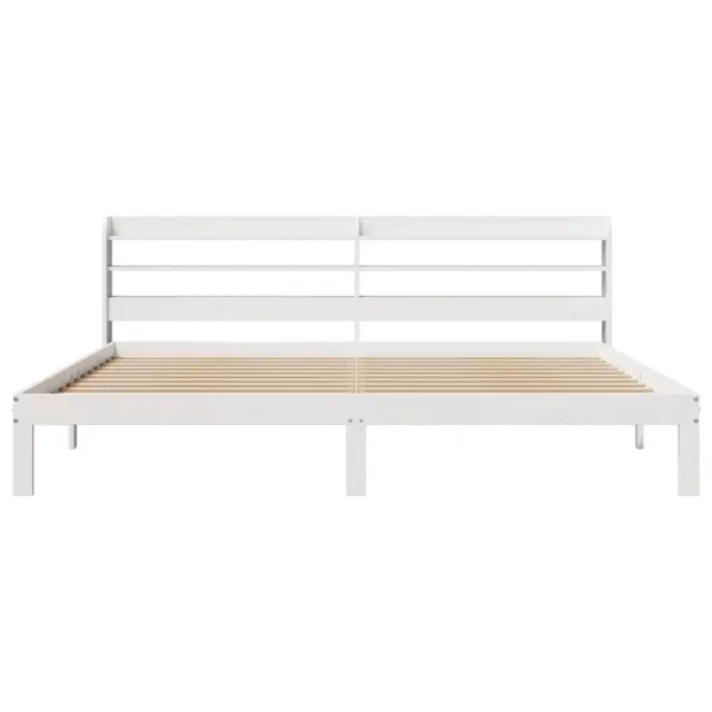 Posteljni okvir - Dvoposteljna postelja - Zakonska postelja z vzglavjem brez vzmetnice bel 200x200 cm