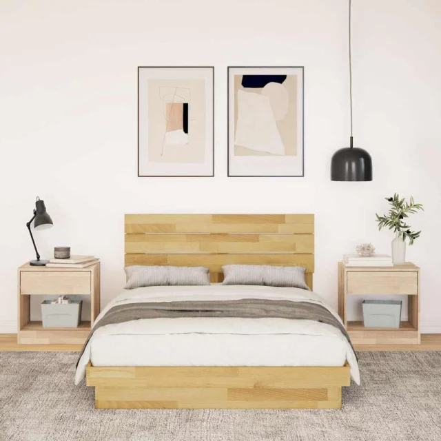 Posteljni okvir - Dvoposteljna postelja - Zakonska postelja z vzglavjem brez vzmetnice masivni les hrast