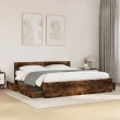 Posteljni okvir - Dvoposteljna postelja - Zakonska postelja z vzglavjem dimljen hrast 180x200 cm inž. les