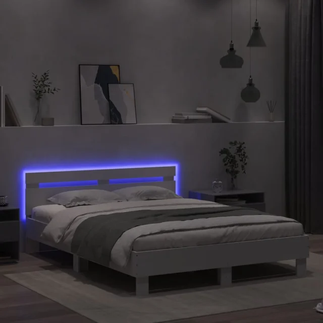 Posteljni okvir - Dvoposteljna postelja - Zakonska postelja z vzglavjem in LED bel 140x200 cm