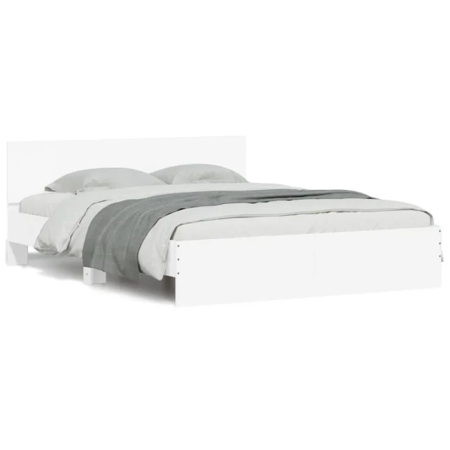 Posteljni okvir - Dvoposteljna postelja - Zakonska postelja z vzglavjem in LED bel 150x200 cm