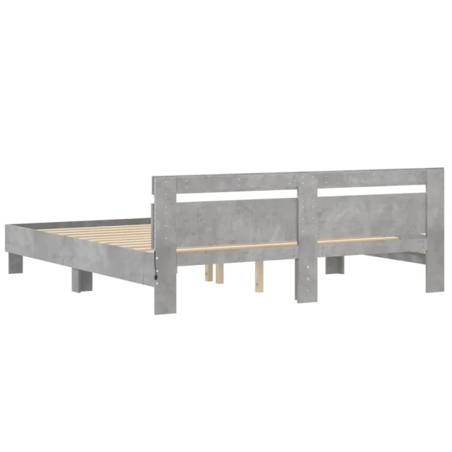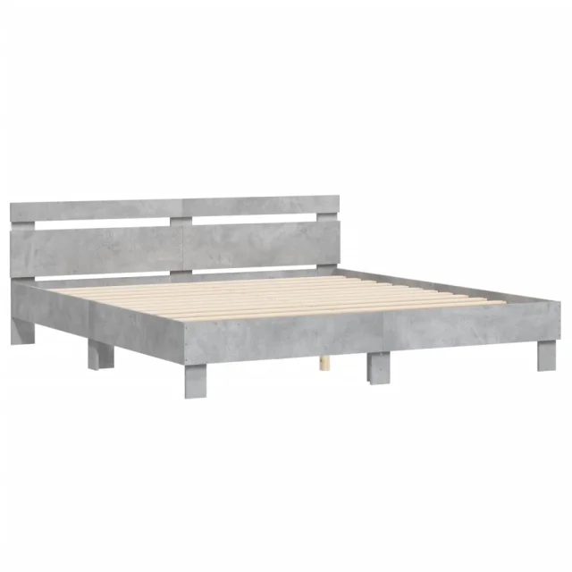 Posteljni okvir - Dvoposteljna postelja - Zakonska postelja z vzglavjem in LED betonsko siv 180x200 cm