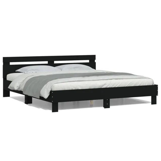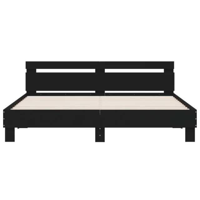 Posteljni okvir - Dvoposteljna postelja - Zakonska postelja z vzglavjem in LED črn 160x200 cm