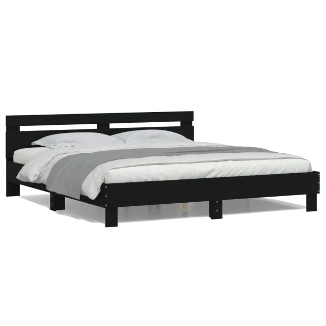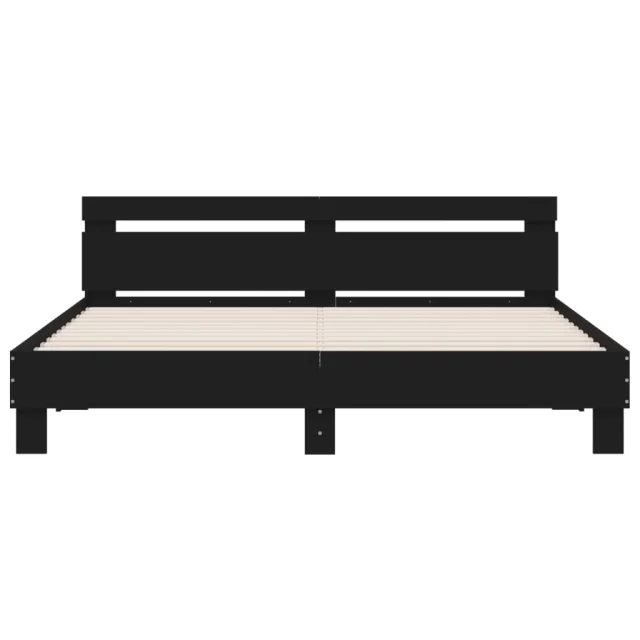 Posteljni okvir - Dvoposteljna postelja - Zakonska postelja z vzglavjem in LED črn 180x200 cm