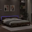 Posteljni okvir - Dvoposteljna postelja - Zakonska postelja z vzglavjem in LED dimljen hrast 200x200 cm