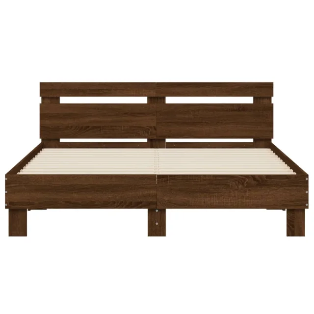 Posteljni okvir - Dvoposteljna postelja - Zakonska postelja z vzglavjem in LED rjavi hrast 140x200 cm