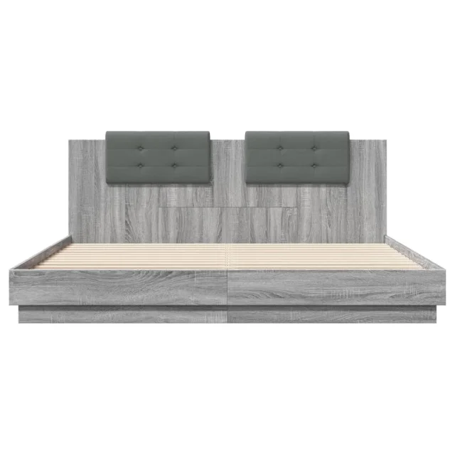 Posteljni okvir - Dvoposteljna postelja - Zakonska postelja z vzglavjem in LED siva sonoma 160x200 cm