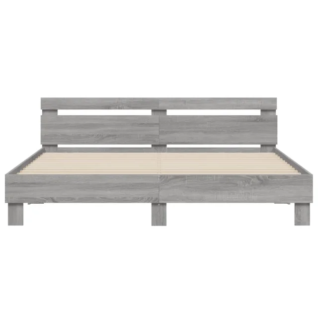 Posteljni okvir - Dvoposteljna postelja - Zakonska postelja z vzglavjem in LED siva sonoma 160x200 cm
