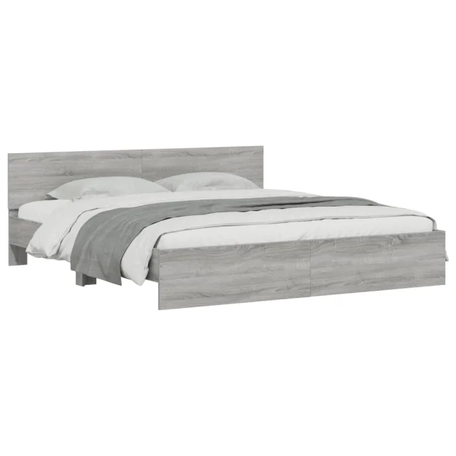 Posteljni okvir - Dvoposteljna postelja - Zakonska postelja z vzglavjem in LED siva sonoma 180x200 cm