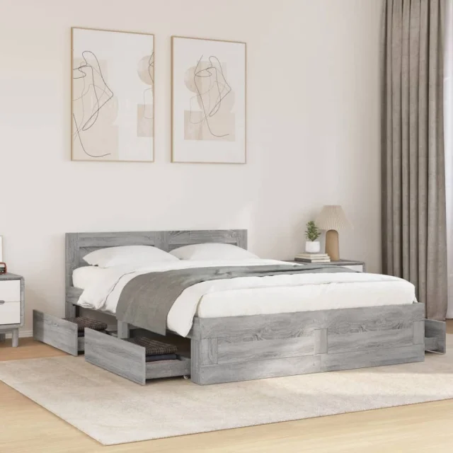 Posteljni okvir - Dvoposteljna postelja - Zakonska postelja z vzglavjem siva sonoma 140x200 cm inž. les