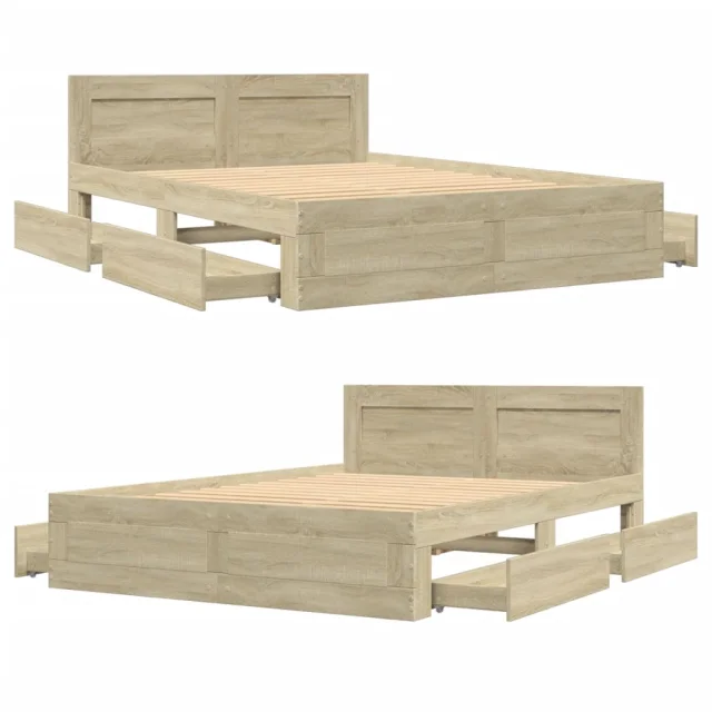 Posteljni okvir - Dvoposteljna postelja - Zakonska postelja z vzglavjem sonoma hrast 120x190 cm inž. les