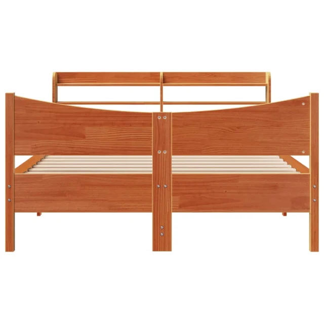 Posteljni okvir - Dvoposteljna postelja - Zakonska postelja z vzglavjem voščeno rjava 140x200 cm borovina