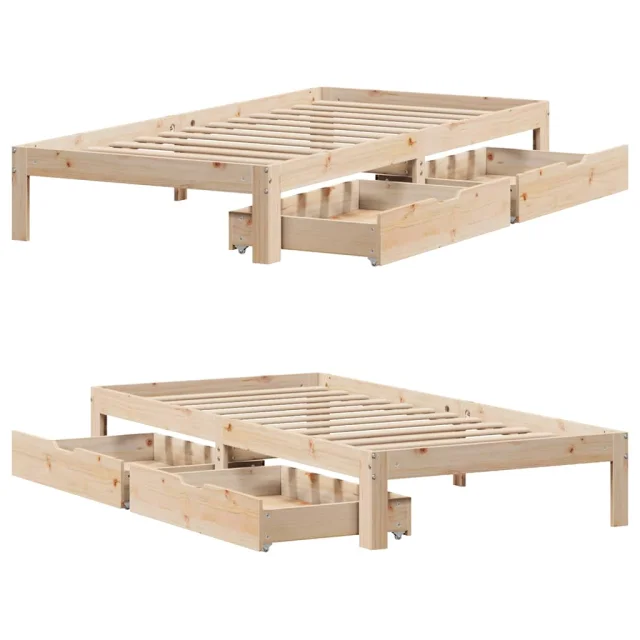 Posteljni okvir - Enojna postelja - Postelja za odrasle s predali 90x200 cm trdna borovina