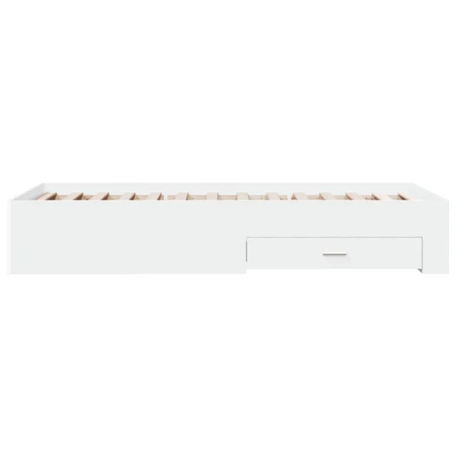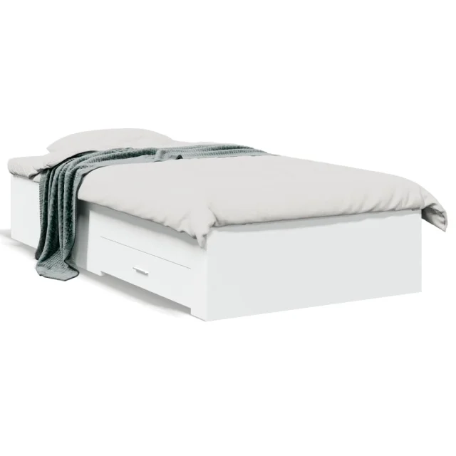 Posteljni okvir - Enojna postelja - Postelja za odrasle s predali bel 100x200 cm inženirski les