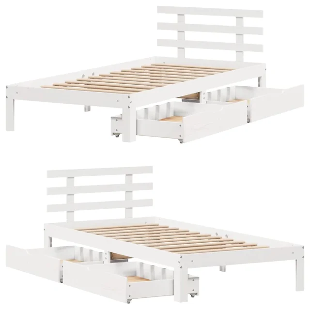 Posteljni okvir - Enojna postelja - Postelja za odrasle s predali bel 100x200 cm trdna borovina